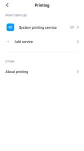 - Setelah selesai di Install, Nyalakan Print Service di HP Anda. Caranya dengan membuka setting di HP Android Anda lalu cari “Printing Service”